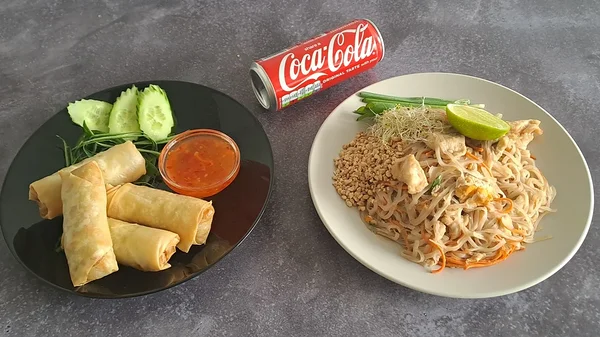 Thai with Chicken + Spring Rolls (4 pcs) + Coca-Cola or another drink from the